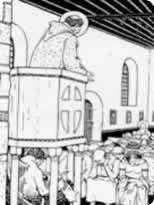 Beatus se rendit chez son élève Justus à Einen pour le sermon de Pâques cet après-midi-là. À son arrivée, Justus avait déjà commencé à prêcher ; il s'assit donc sur le banc du fond pour ne déranger personne. Dans la petite église, cependant, l'humidité était telle que plusieurs personnes commencèrent à s'endormir. Beatus fut attristé de voir cela ; mais il fut encore plus horrifié en voyant Satan lui-même assis sous la chaire. Il écrivait les noms de ceux qui rêvaient sur une peau de chèvre, perdant ainsi leur salut au Jour du Jugement. Beatus était dans une situation désespérée. Il aurait aimé réveiller les dormeurs pour qu'ils ne manquent pas l'Amen de Justus et ne tombent pas sous le pouvoir du diable. Mais il n'eut pas le droit de perturber le service. Soudain, les choses prirent une tournure inattendue : il y avait tellement de dormeurs dans l'église que Satan n'avait plus la place sur sa peau pour les écrire. Il essaya de les étirer entre ses dents et ses griffes ; Il tira, tira… jusqu'à ce que sa peau éclate et qu'il se cogne la tête si violemment contre la chaire que le son retentit dans toute l'église. Beatus rit bruyamment de ce stupide diable, et tout le monde se réveilla juste avant que Justus ne prêche.
